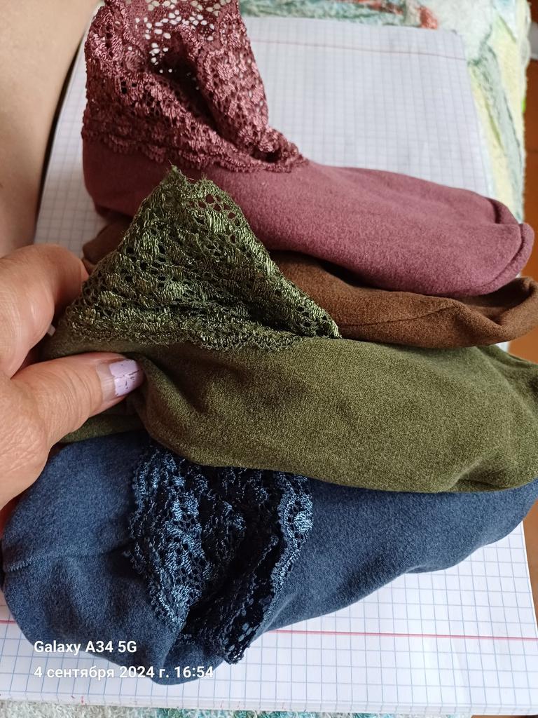 I received the order, 2xL are suitable for 48-50 years old, but they are short, I finished the knitted cuffs. The pants are pretty, I am satisfied.