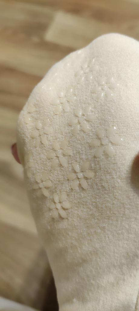 The socks are nice, flannel, warm. I bought them to wear at home instead of slippers. There is silicone on the sole in the shape of a flower to prevent the sole from slipping. The socks will fit up to size 39 at most.
