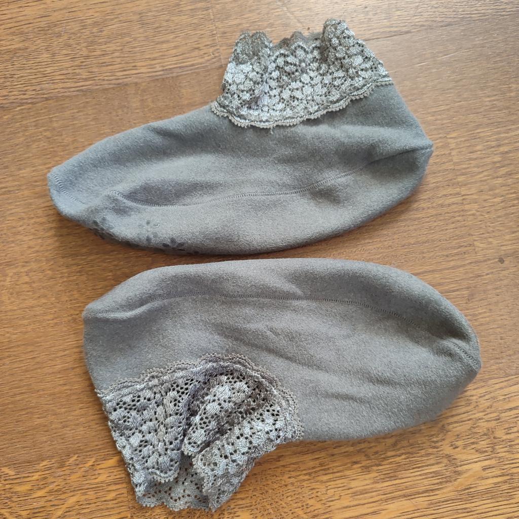 Interesting socks: thick, soft, elegant. With lace and non-slip soles. Pretty. They fit my size 39.