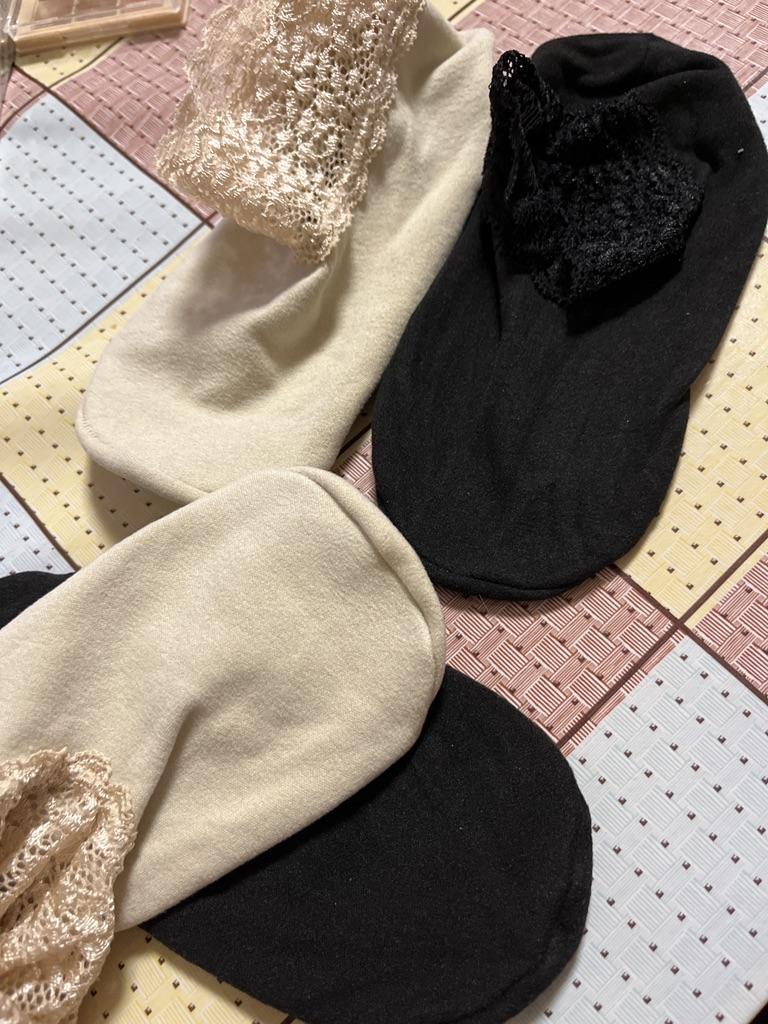 Interesting socks! Tracked. The lace elastic is a bit narrow. The sole has an anti-slip layer.