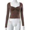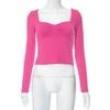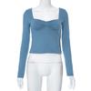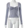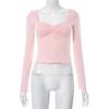 Autumn Y2K T-Shirts Solid Square Neck Long Sleeve Side Split Top Womens T-shirt For Women Streetwear Clothes 29669