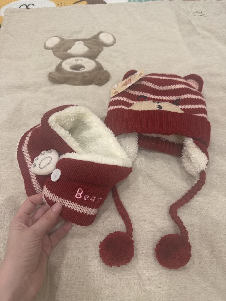 Very warm set. Everything is neat, threads do not stick out, but the color is whiter than burgundy, not so bright red.