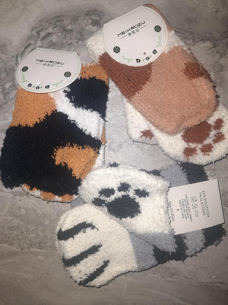 1 Pair Women Socks Plush Coral Velvet Autumn Winter Cat Paw Lovely Thickening Warm Floor Socks