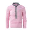 Men's Polo Shirt Long Sleeve Plaid Stand Neck T-shirt Spring Autumn Casual Fit Top Men
