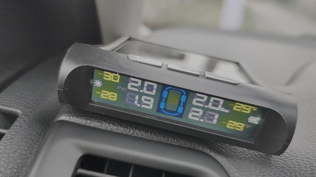 The pressure shows accurately, it is easy to set up, it takes up little space on the panel. It turns on automatically when you get into the car, and turns off when you get out, I don't know how, but it works well.