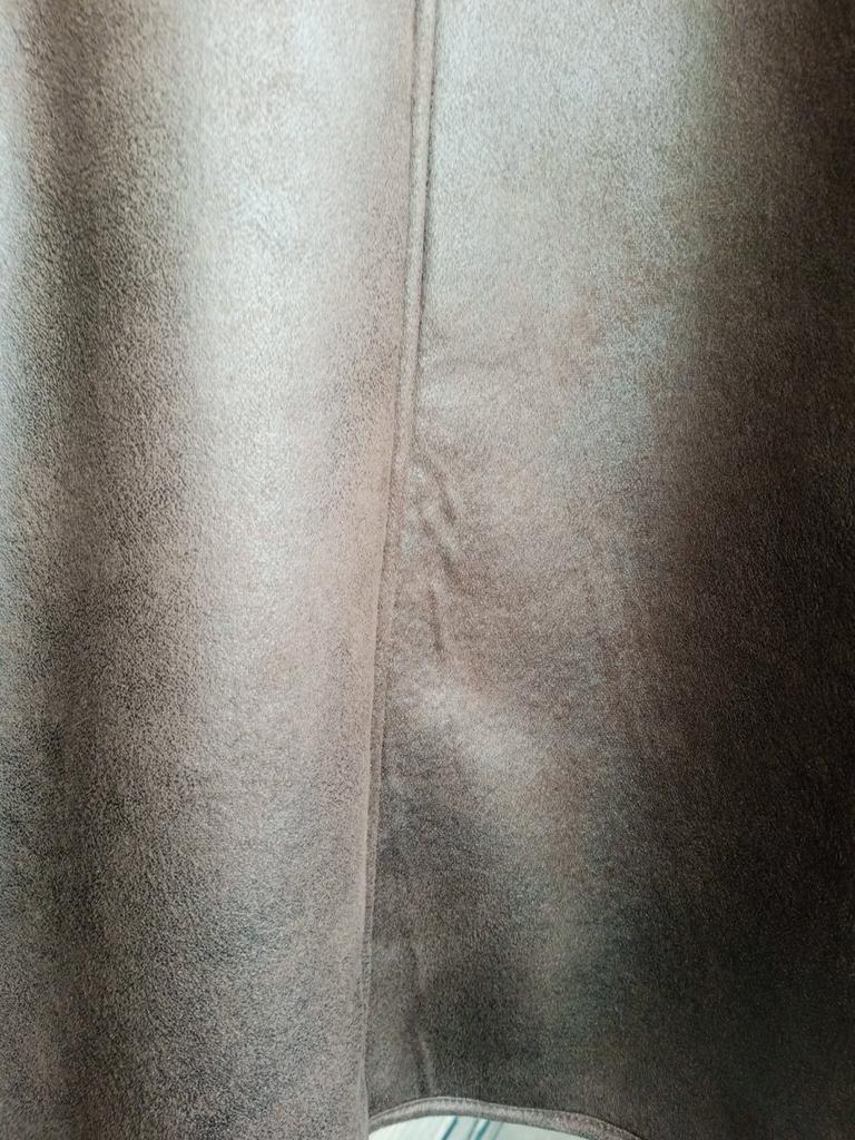Does not correspond to the description!!! Oblique sewing (sleeves are one long, one short, wider, narrower. I thought it would be leather instead, but it is some kind of fabric... I will not wear it