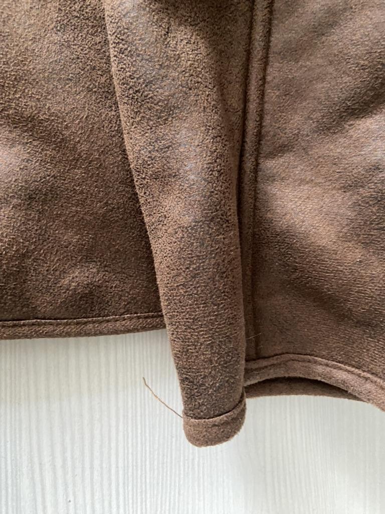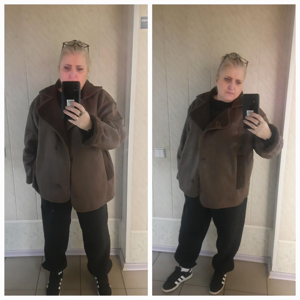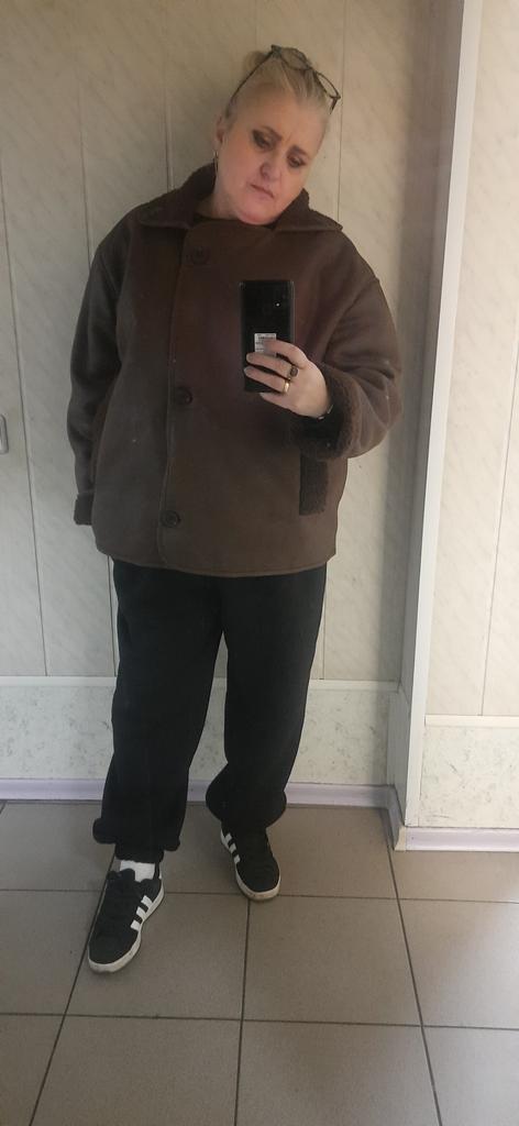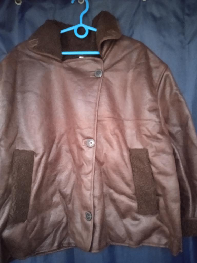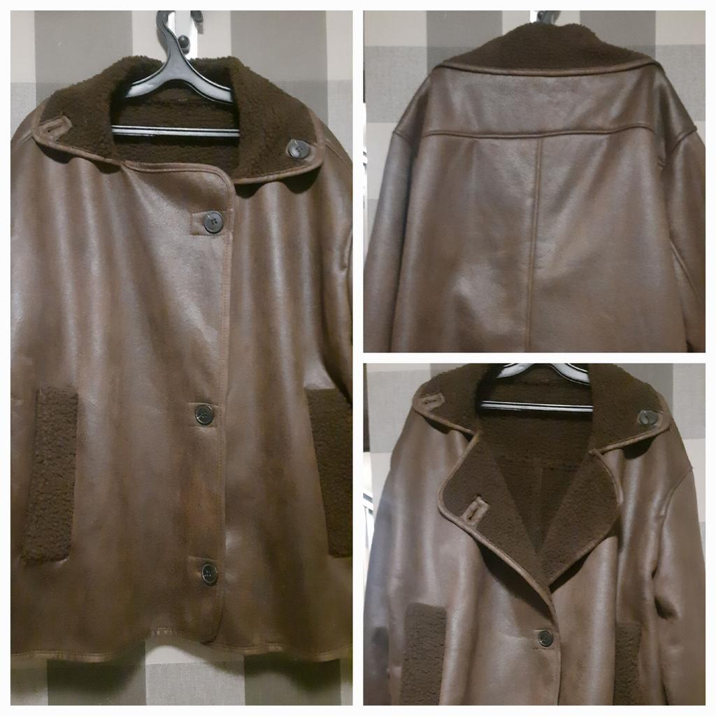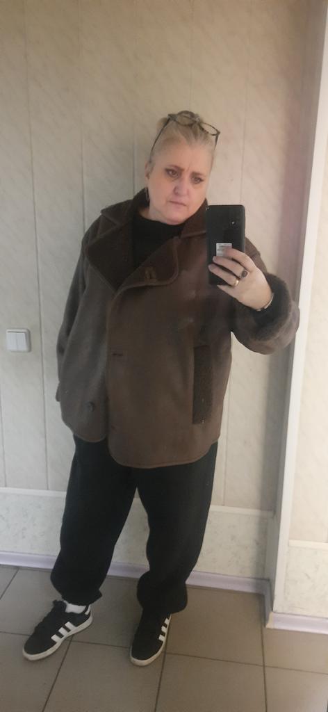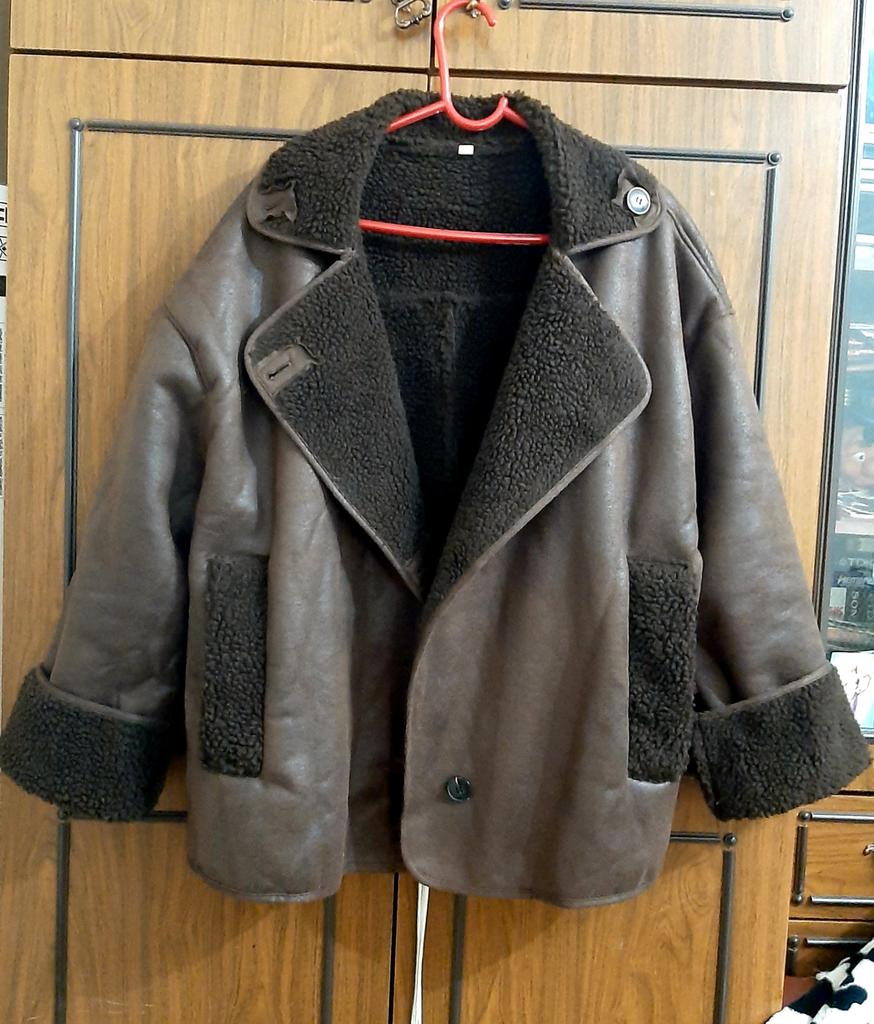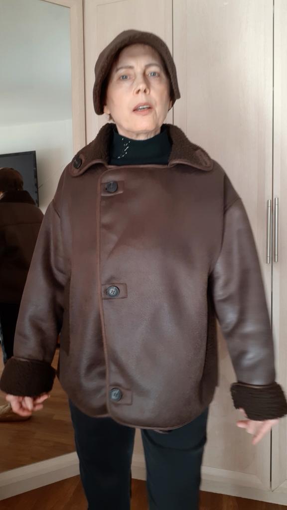 The faux leather jacket is not bad, I don’t like the grenadier shoulders and pockets, they create an uncomfortable lump on the stomach. Otherwise, not bad. 46/48 is loose.