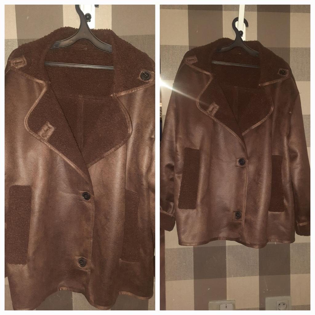 Cool faux leather jacket! Very light, soft, beautiful dark brown color. Fits perfectly, moderately loose. I am satisfied with the product, thank you very much!