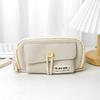 Hemp Rope Pencil Case Pen Bag 3 Compartments Front Pocket Oxford Fabric Storage Pouch for Stationery School