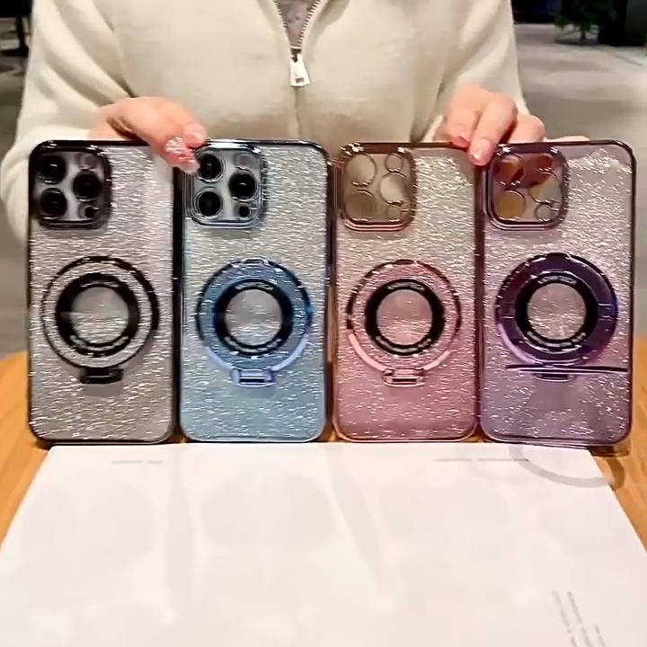 Luxury Gradient Glitter Paper Magnetic Stand Case for iPhone 15 14 13 12 11 Pro Max XS XR 7 8Plus SE 2020 All-inclusive Fall Protection Cases