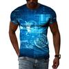 Handsome Men's Technology Element Pattern 3D T-Shirt Hip-Hop Style Casual Round Neck Tops Trendy Street Personality Clothing