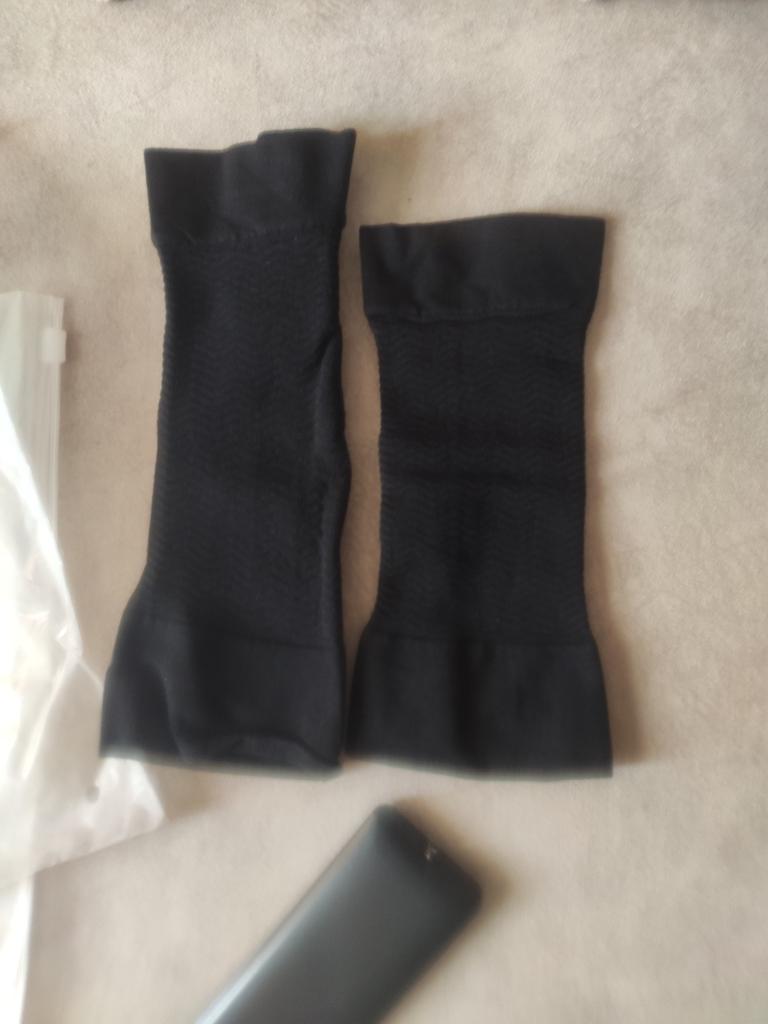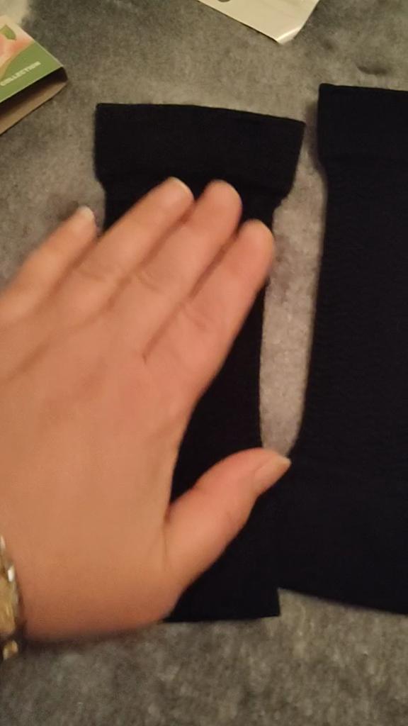 Comfortable to use, thin, shape the hand well, fabric breathes. Took size L, put on easily, don't press on the hands and perfectly remove sagging skin.