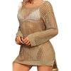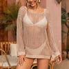 Charmleaks Cover Up Solid Cutout Bikini Hook Flower Beach Smock Skirt Woman Long Sleeve