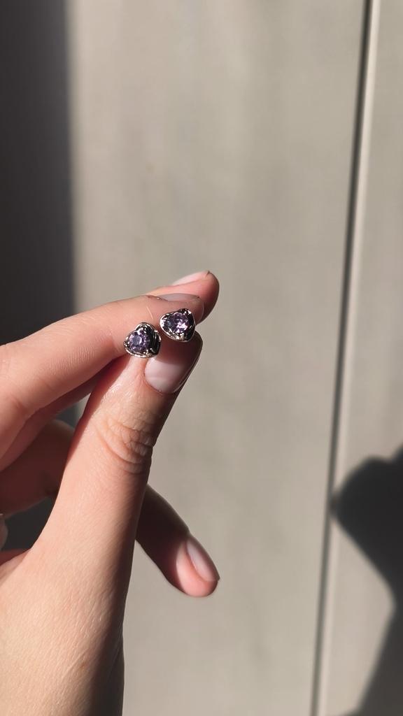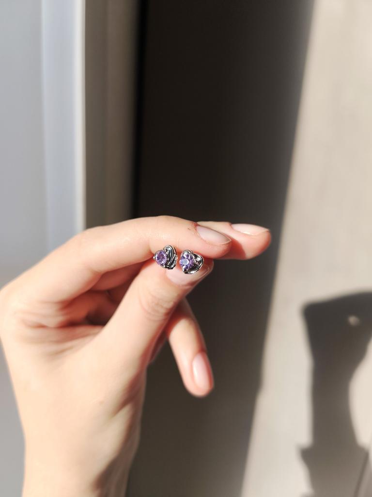 Purple White Women's Small Earrings Mini Love Heart Round Rhinestone Middle Fashion Sweet Tiny Stud Earrings Girls Jewelry