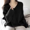 Autumn Vintage Fashion Long Sleeve Knitted Sweater Winter Bottoming Pullover Women Casual V-neck Tops Solid Color Clothes 29898