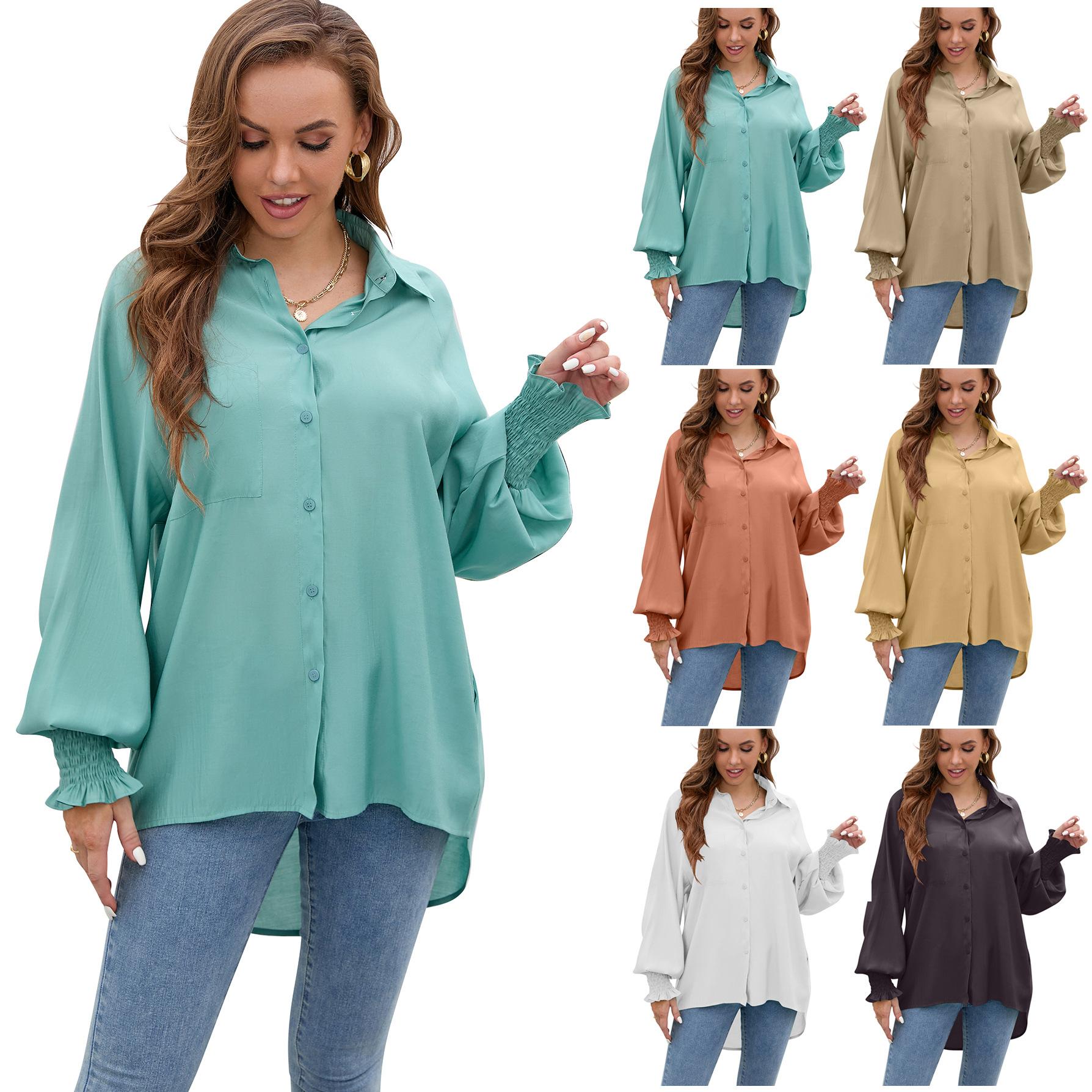 Spring and Autumn Women's Shirt Insert Sleeve Tencel Top Soft Solid Color Loose Plus Size Blouse