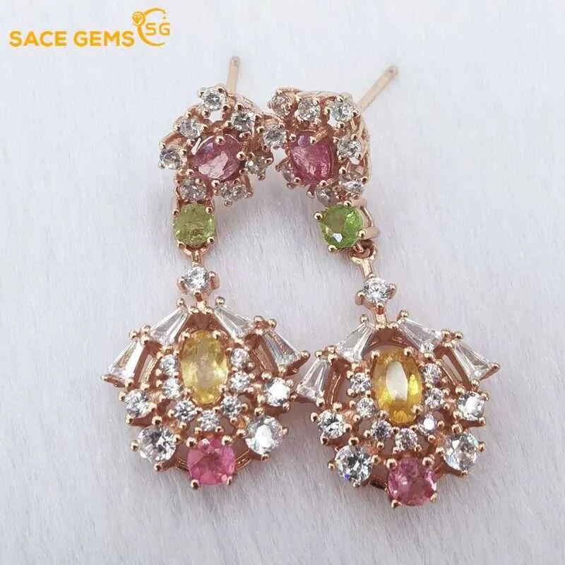 Sace Gems Earring for Women 925 Sterling Silver Natural Tourmaline Stud Earrings Wedding Party Fine Jewelry Eardrop Gift