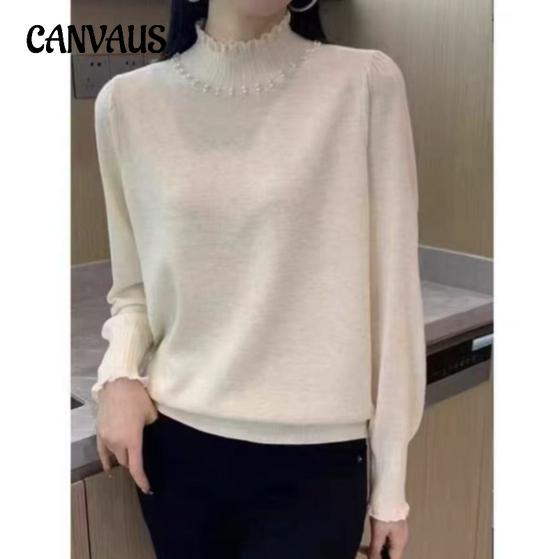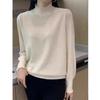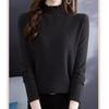Autumn and Winter Women's Knitwear Solid Color Lantern Sleeve Knitwear Women Pearl Half High Neck Slim Bottoming Shirt Long-sleeved Blouse