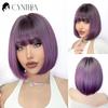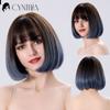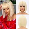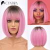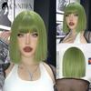Green Short Bob Hair Synthetic Wig For Woman With Bangs Blonde Ombre Pink Cosplay Lolita Party Heat Resistant Daily Natural Hair