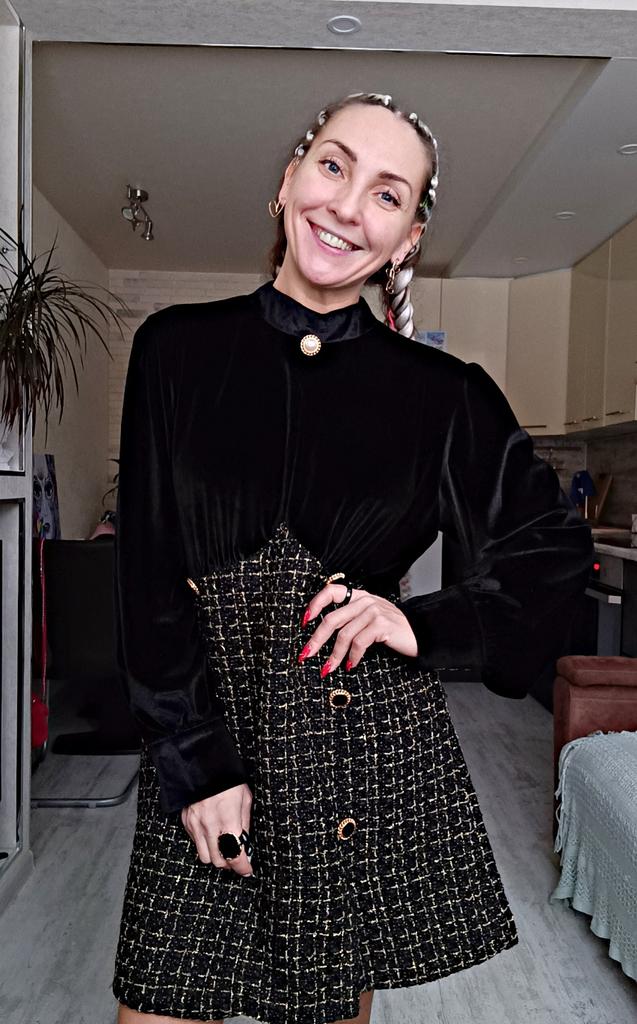 Elegant Velvet Splice Dress for Women French Style with Plus Size for Spring Autumn