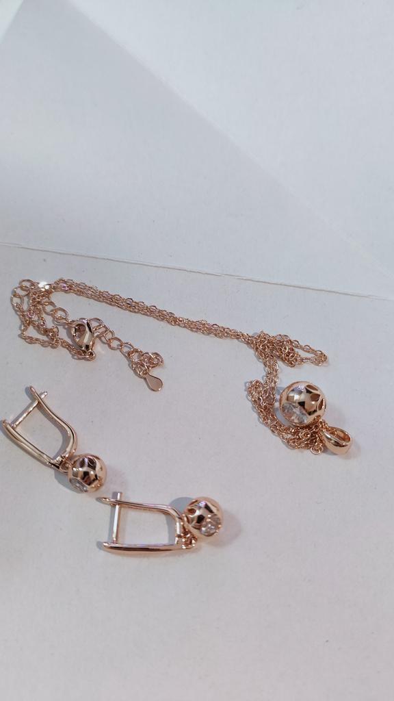 Kinel Rose Gold Color Orb Pendant Necklace Earrings Daily Easy Matching Fine Jewelry Set