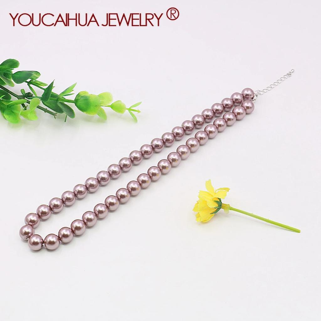 10mm Purple Shell Pearl Necklace Round Beads Neckchain,Chritmas Gifts for Women,18inch Women's Jewelry Making/Design