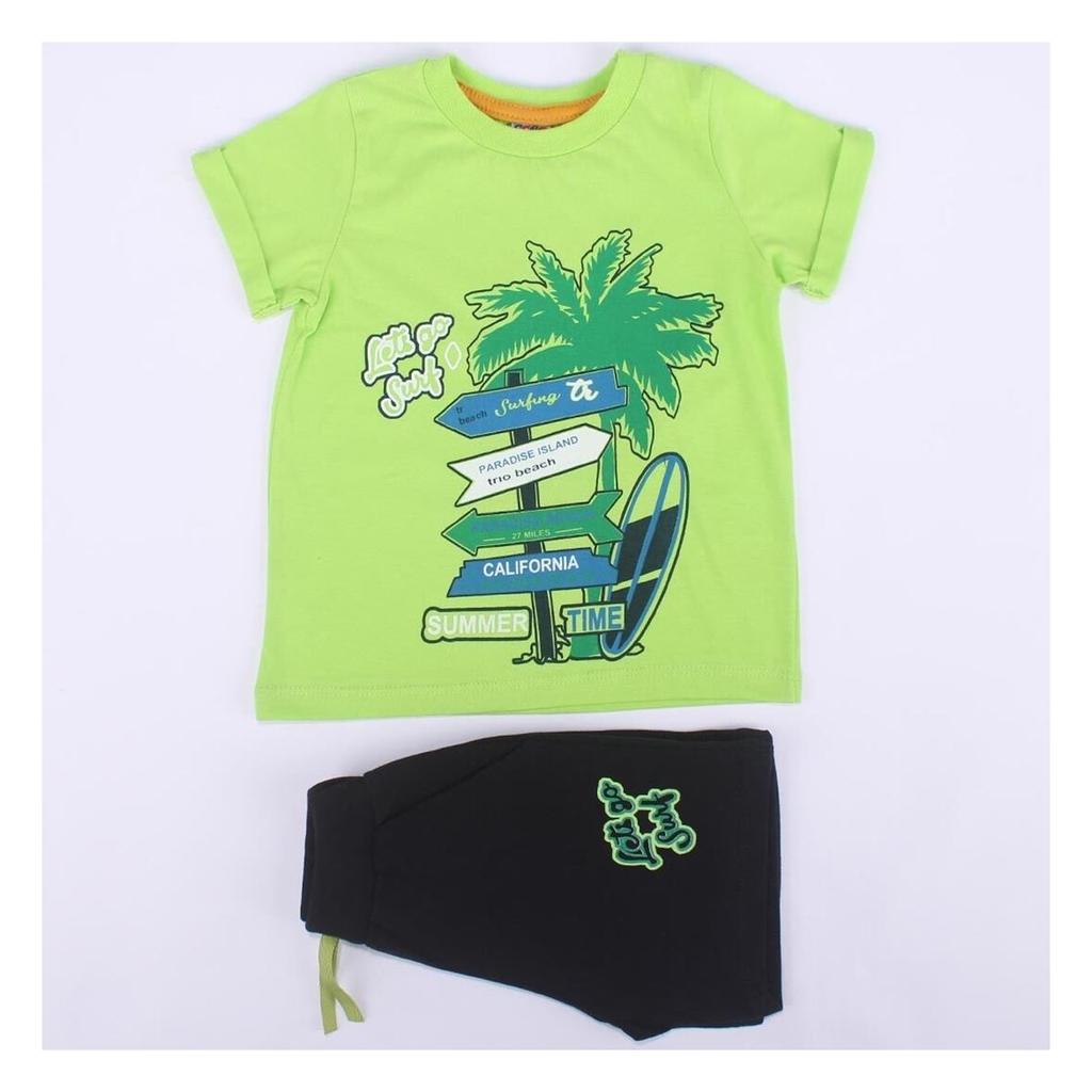 Boy Green Navy Blue Summer Time Written Sign Printed Shorts 2-Pack Set