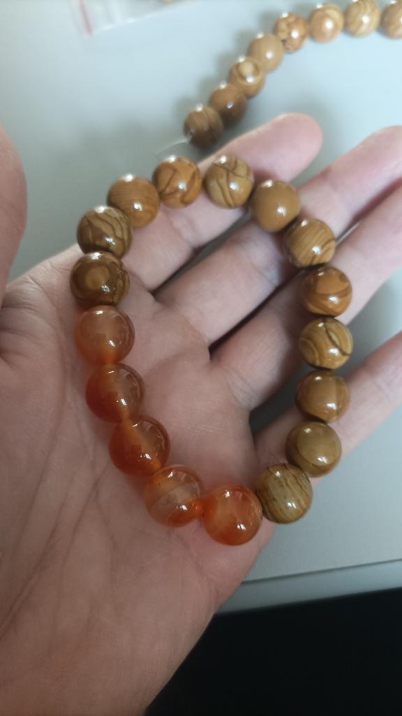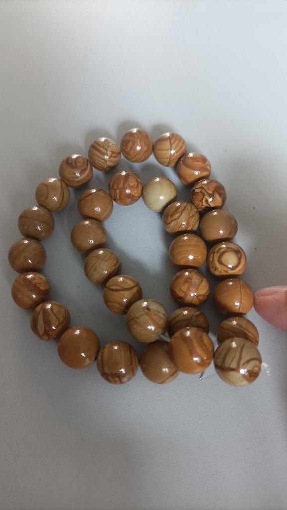 The beads have a pattern on them, they are easy to scratch, it's a shame it's a fake