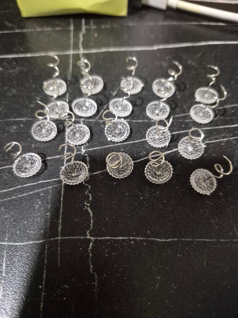 Everything is as in the photo. The spirals are not large, with transparent caps. In a box. 20 pieces, as I ordered.
