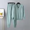 Two Piece Women Knit Sport Suits V Neck Women Sweater Drawstring Harem Pants Jogging Pants Pullover Sweater Set Knitted Outwear