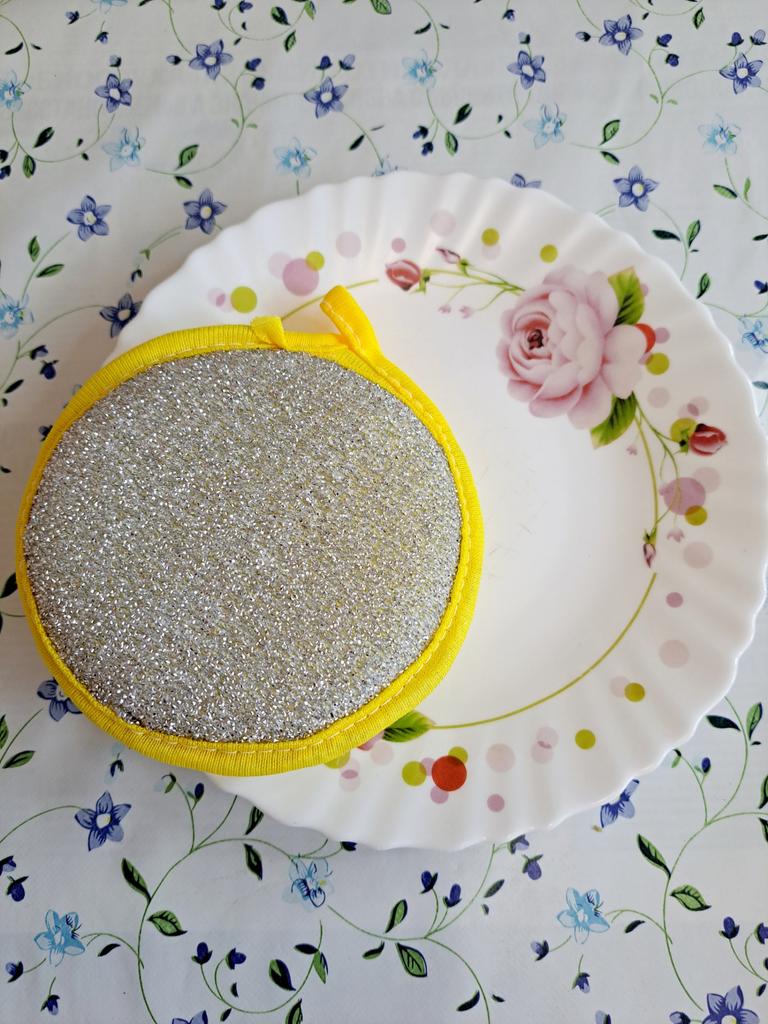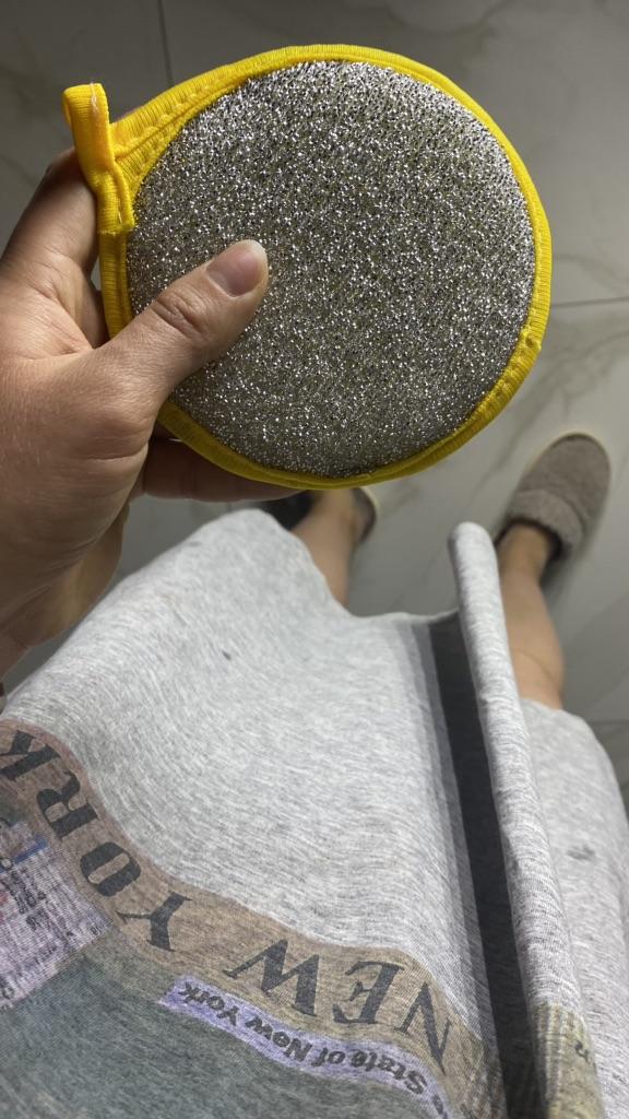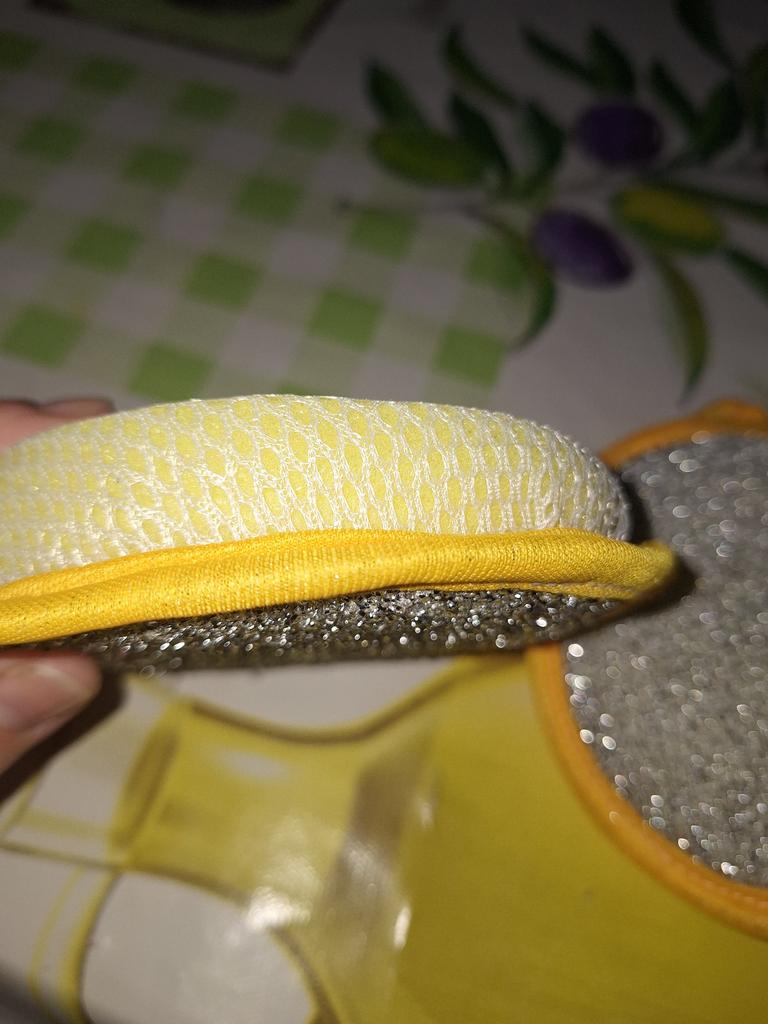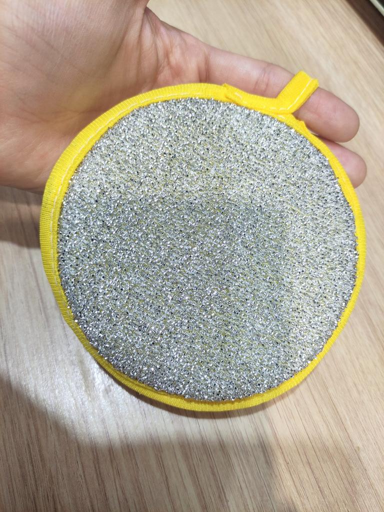 Double-sided sponge for washing dishes 🧽 Big, but comfortable. It foams very well. The mesh side is for washing, and the side with metal spraying is for removing grease. It has a loop that can be hung on a hook, and the inside is foam. Such will last a month or two, if washed well after washing dishes. You can buy both one for a trial (I did it) and a set, which of course is more profitable 👌 Mom is satisfied with the purchase, I appreciated that such a sponge covers a larger surface when washing, so I recommend it ❤️