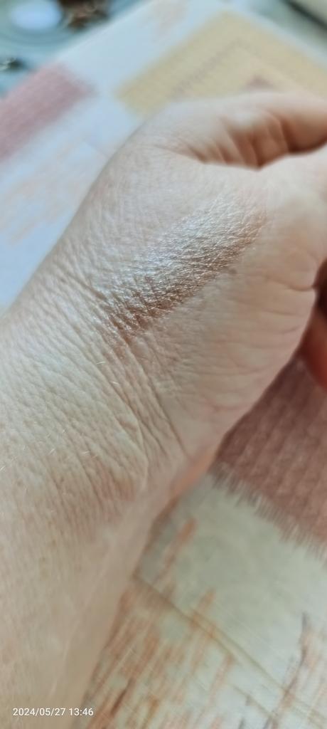 Delicate color, paints well, but on my eyelids I smudge a little with the brush. I like it very much, I'm happy.