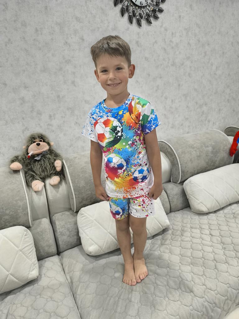 The summer suit is cute. I hope my grandson will like it. Thank you very much. I recommend the product.