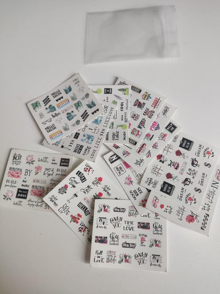 12 Styles Nail Art Water Transfer Sticker English Abstract Image Transfer Slider Decoration