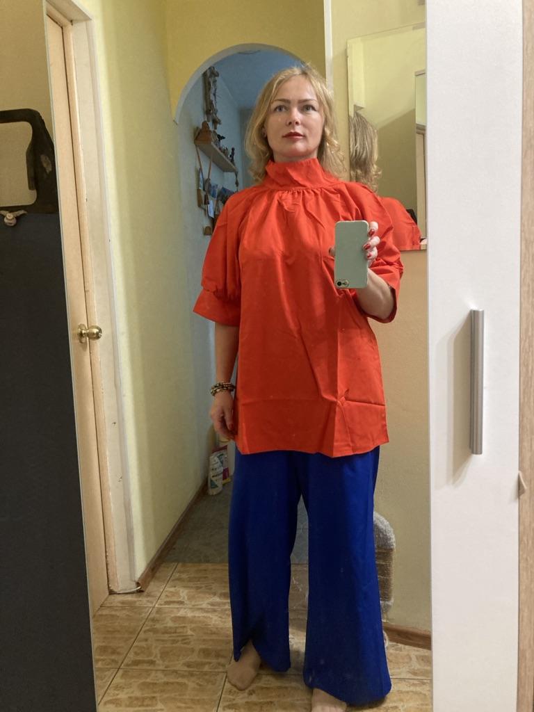Super! The color is bright, the tailoring is wonderful, just like in the picture, a very beautiful blouse.