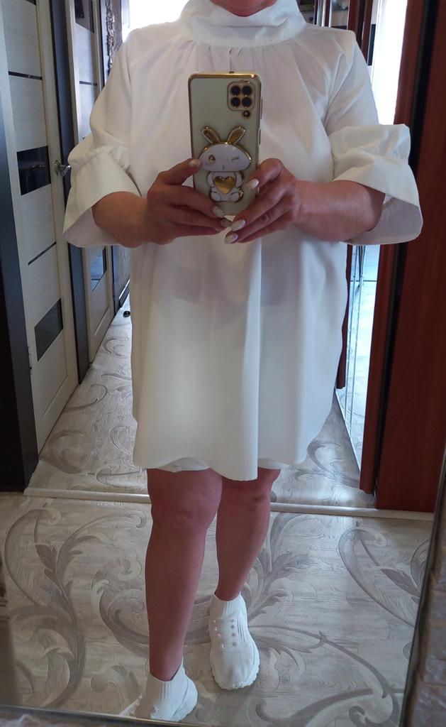 The model is very interesting. Rubber button loops. The trapeze is not as flared at the bottom as in the photo, but everything is fine.