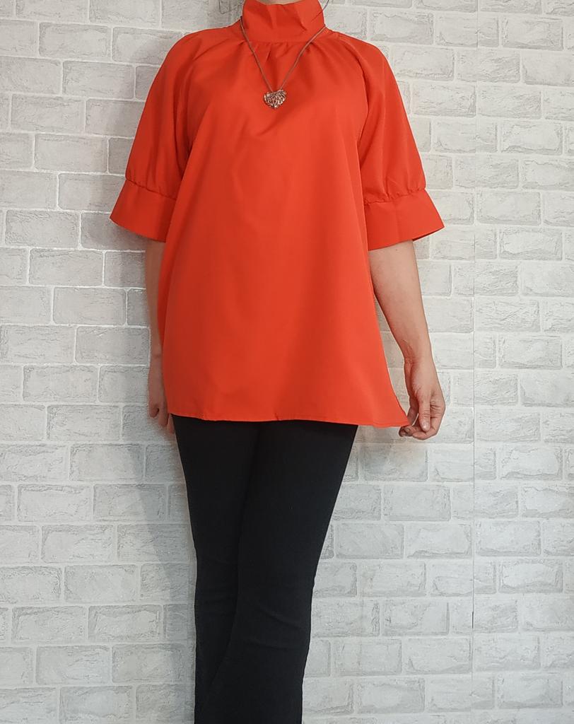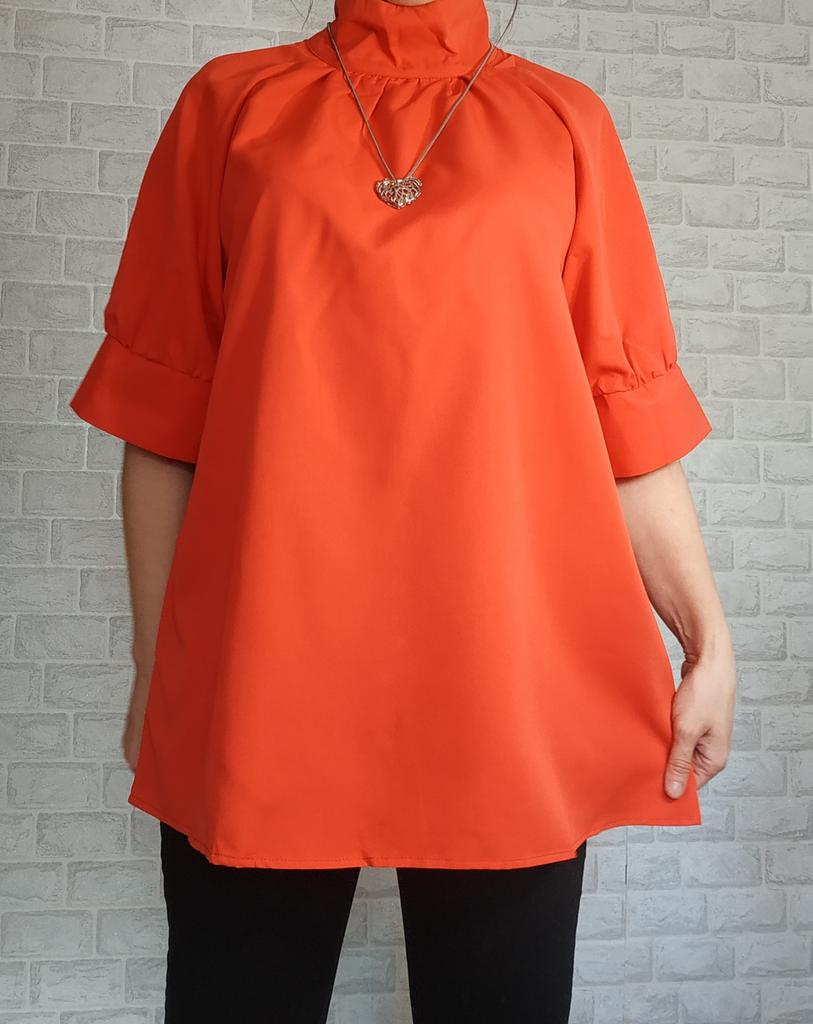 ZANZEA Women High Neck Half Sleeve Solid Casual Oversized Irregular Blouse