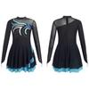 Kids Girls Figure Skating Dance Performance Dresses Rhinestones Mesh Patchwork Long Sleeve Mock Neck Dress Dancewear