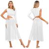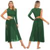 Women Lyrical Modern Contemporary Dance Leotard Patchwork Side Split Mesh Dress Flowy Costume