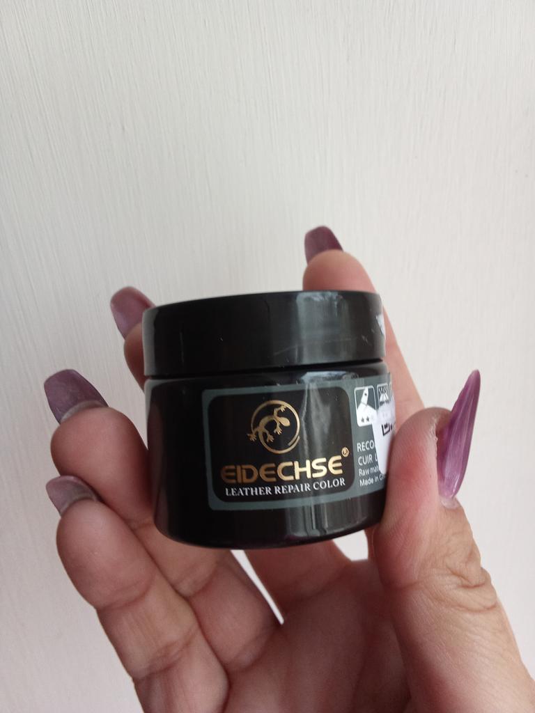 According to the description, it should be dark blue. My camel shoes were a very dark blue. Now they are more violet, so the color is indigo, not blue! Applied with a brush and rubbed in with a cloth, it works well. Only the color takes a lot of getting used to.