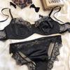 Sexy Leopard Print Women's Underwear French Ultra Thin Lace Bra Set Comfort Underwire Lingerie with High Waist Thongs