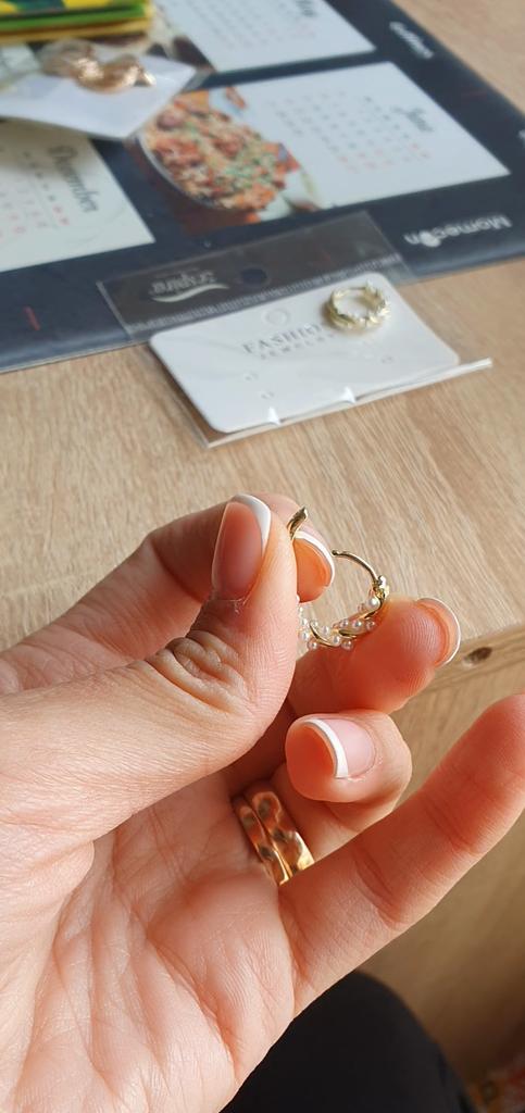 The earrings are okay, but the color of the metal is not the same as in the photo, a little more yellow.