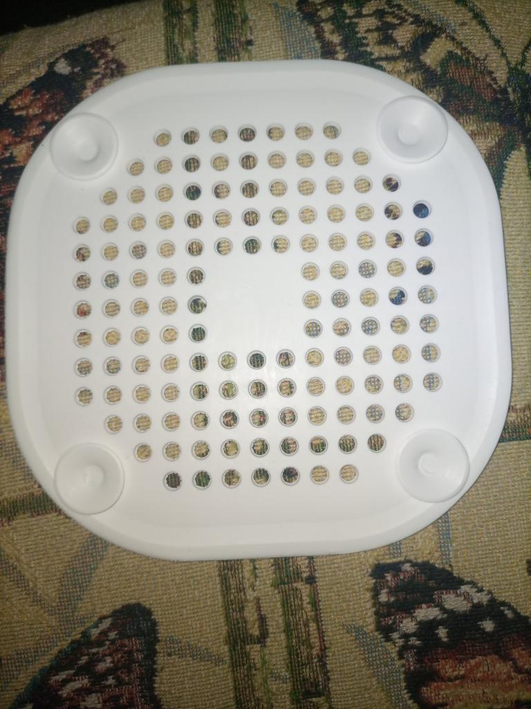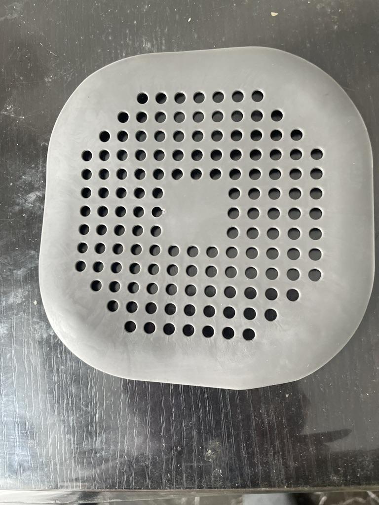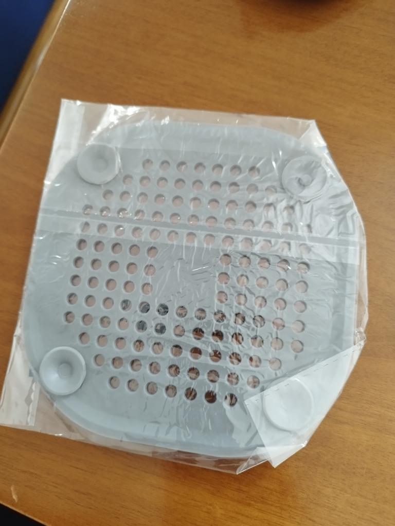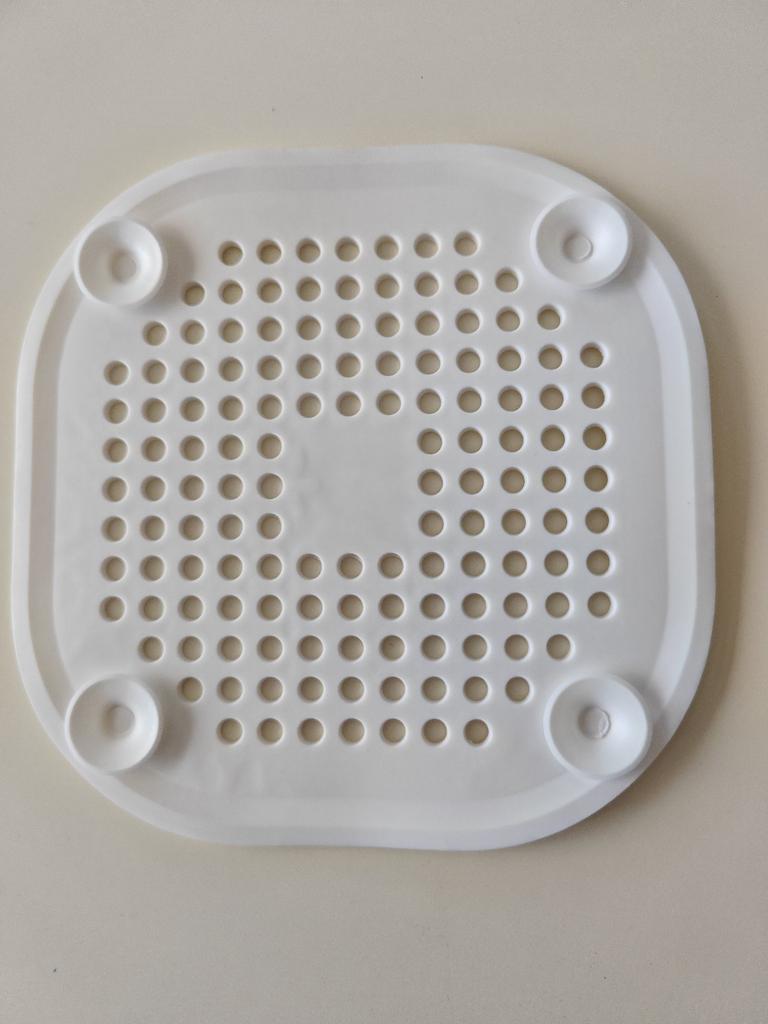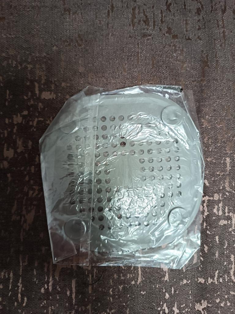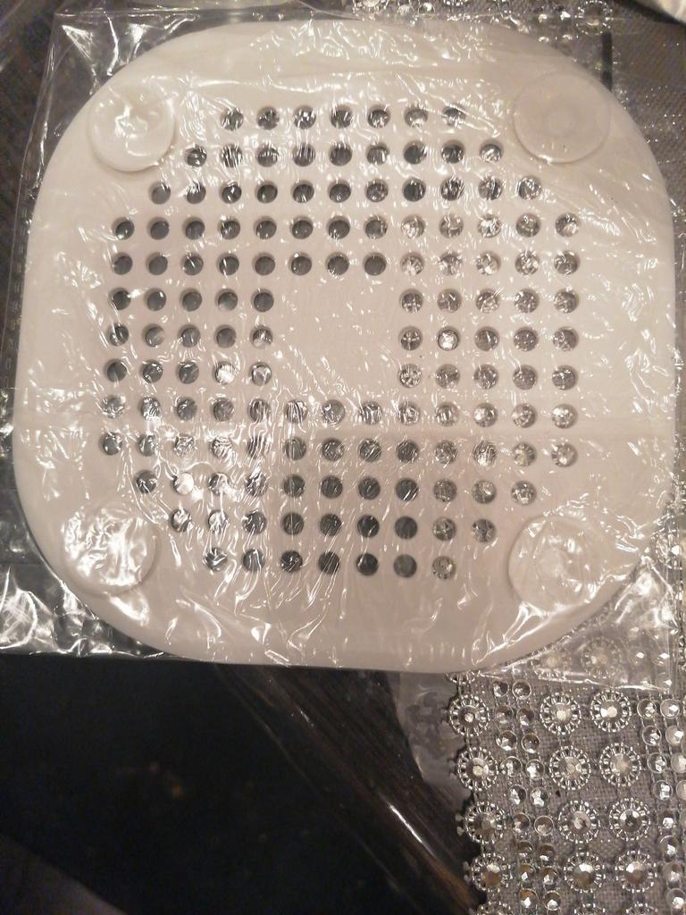 Plastic grate, I wanted to install it in the kitchen sink, but it didn't stick. It seems to have stuck in the shower cubicle. I don't know if it will hold or not. Time will tell.