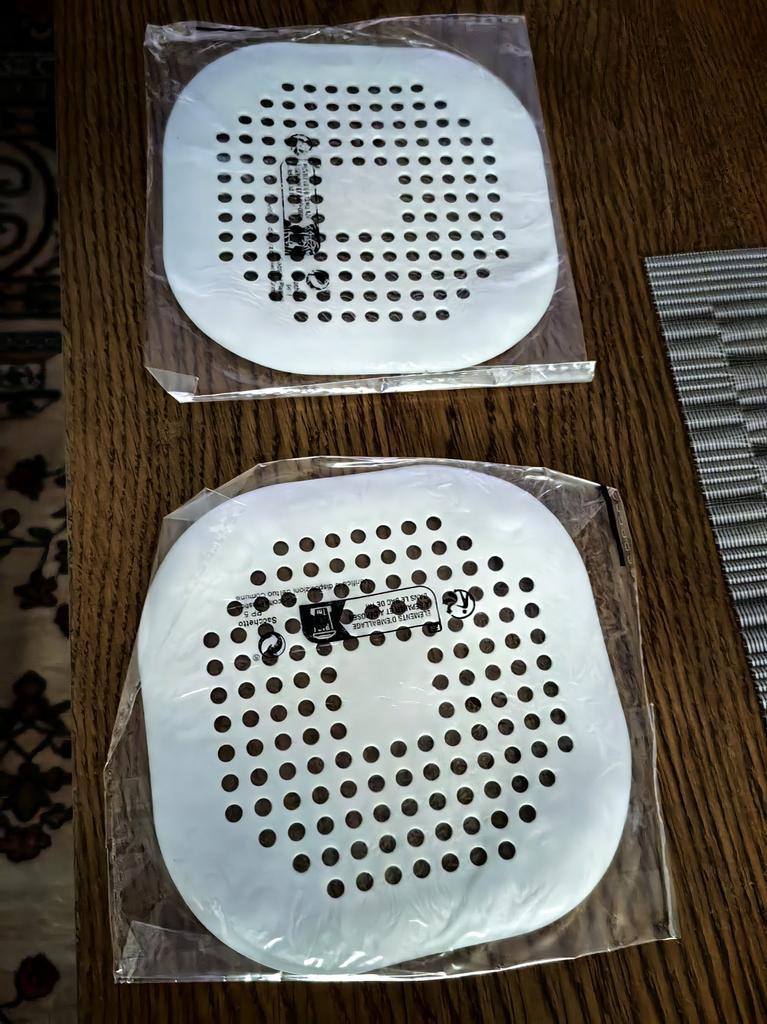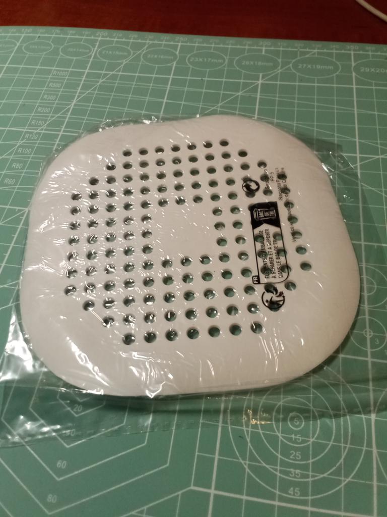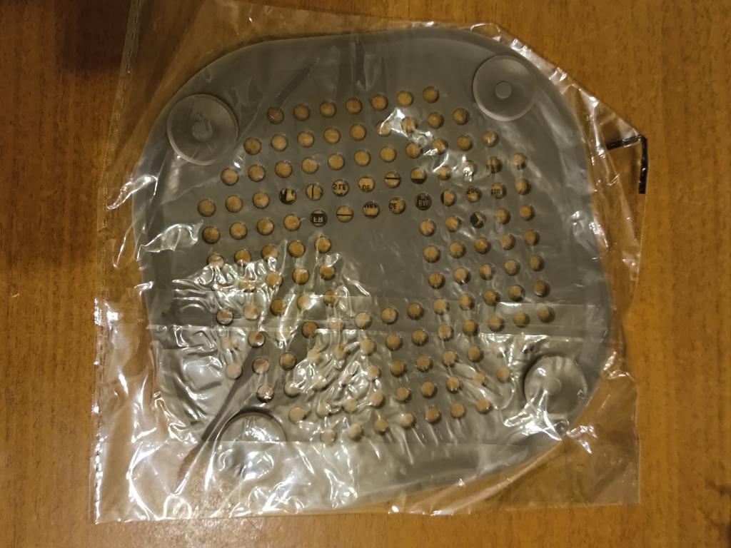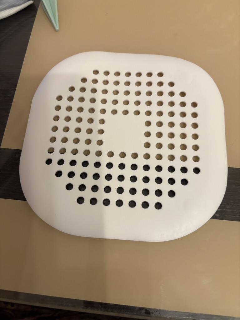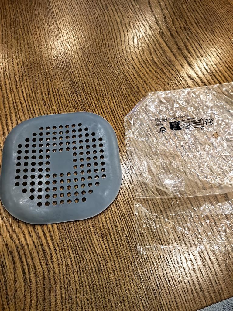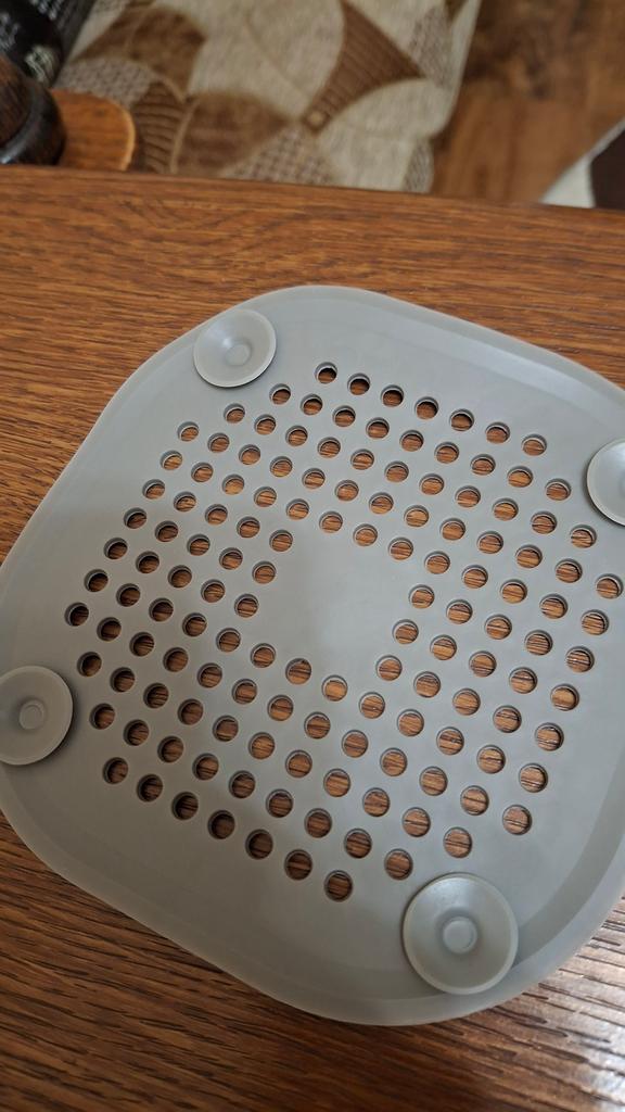 Plastic grate, I wanted to install it in the kitchen sink, but it didn't stick. It seems to have stuck in the shower cubicle. I don't know if it will hold or not. Time will tell.