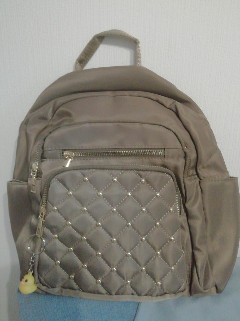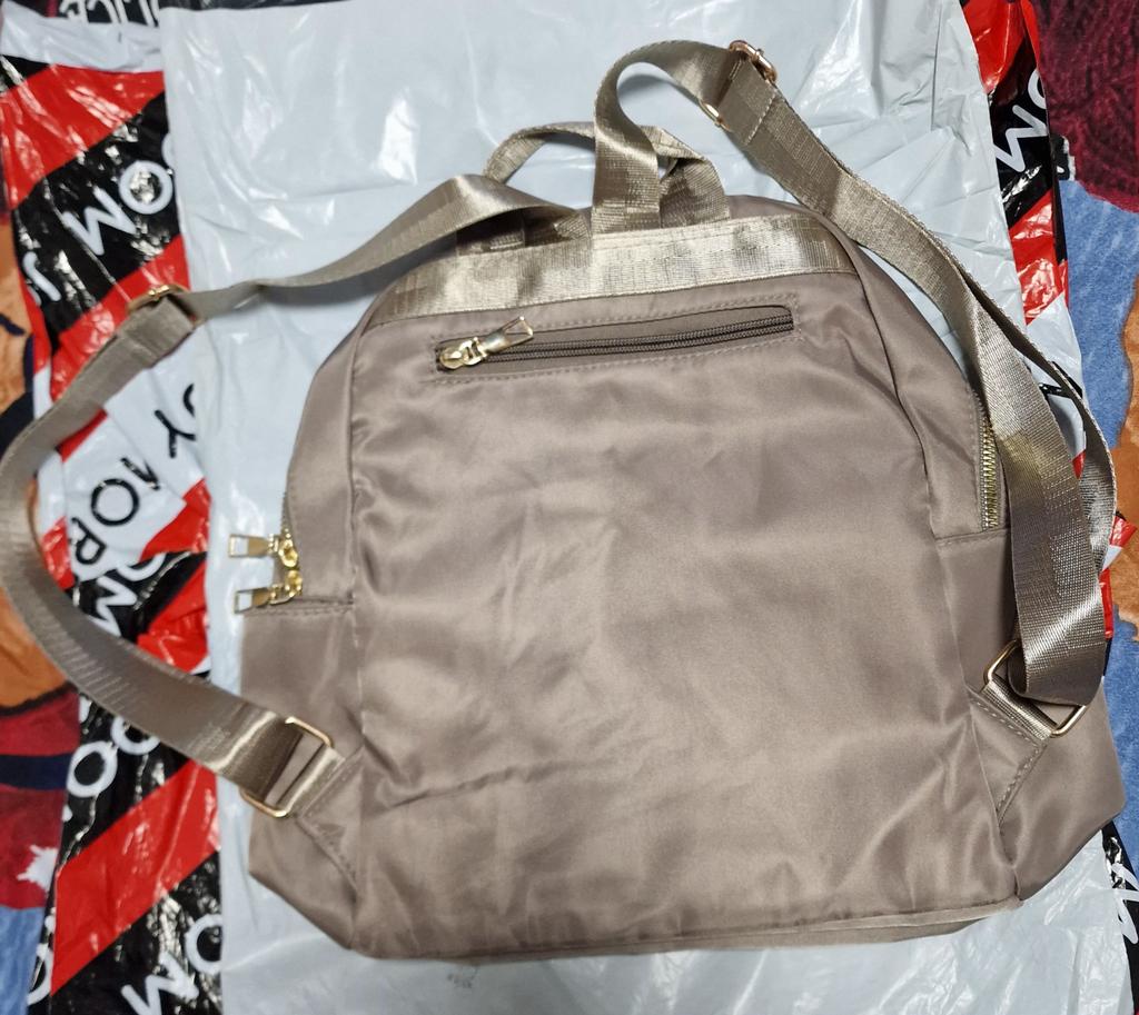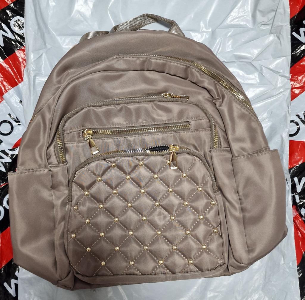 I received a package of a beige backpack bag, as in the photo, with many pockets.