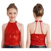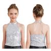 Kids Girls Sparkling Sequin Halter Crop Top Sleeveless Backless Tops for Cheerleading Jazz Dance Gymnastics