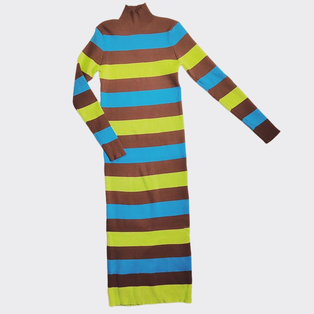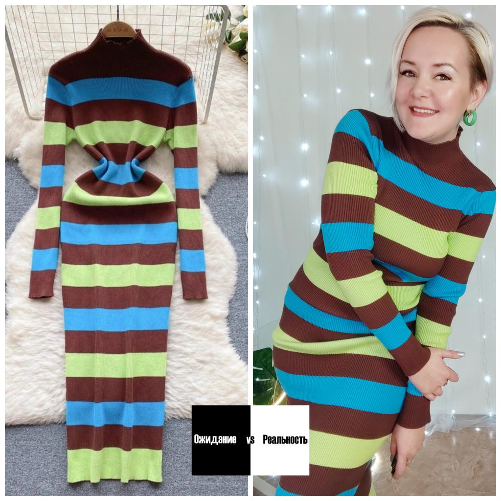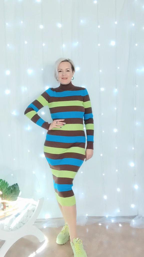 Chic Striped Half High Collar Elastic Knit Bodycon Dress Long Sleeve Women Sexy Fashion Casua Vestido Spring Slim Pencil Dress