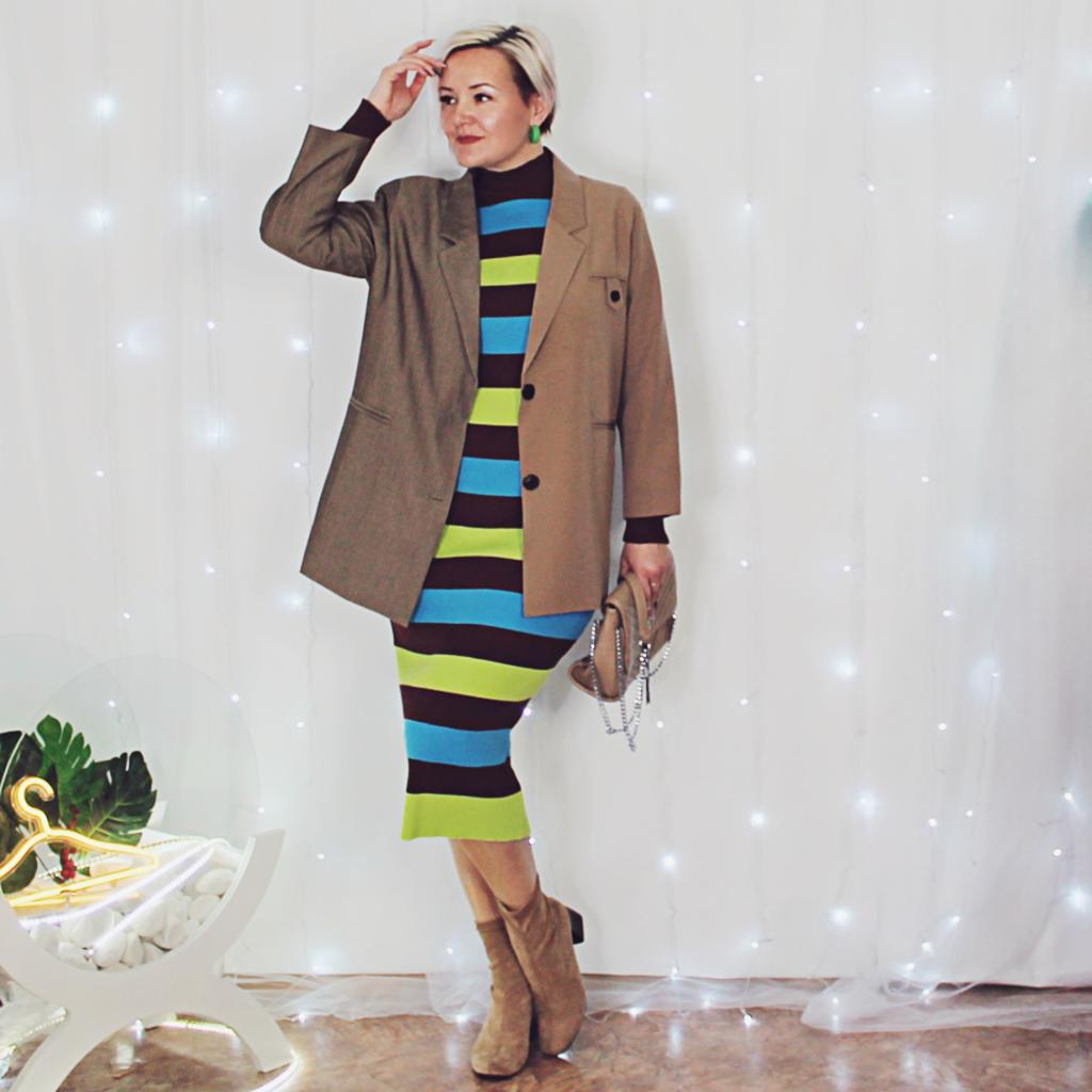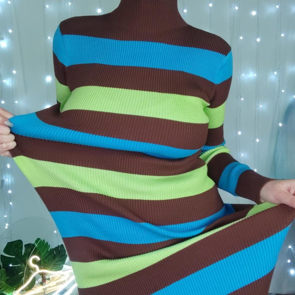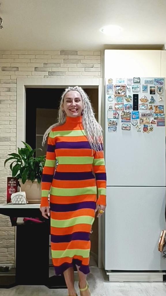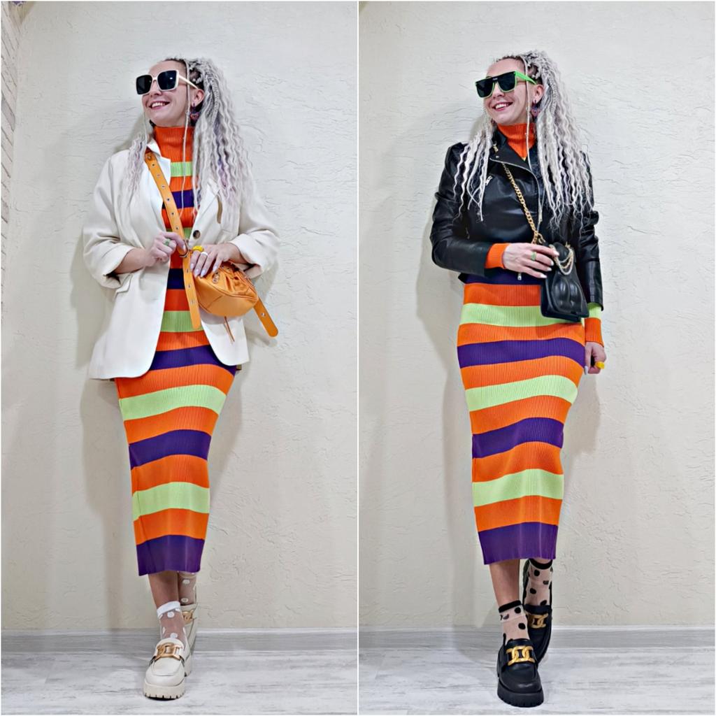 Chic Striped Half High Collar Elastic Knit Bodycon Dress Long Sleeve Women Sexy Fashion Casua Vestido Spring Slim Pencil Dress