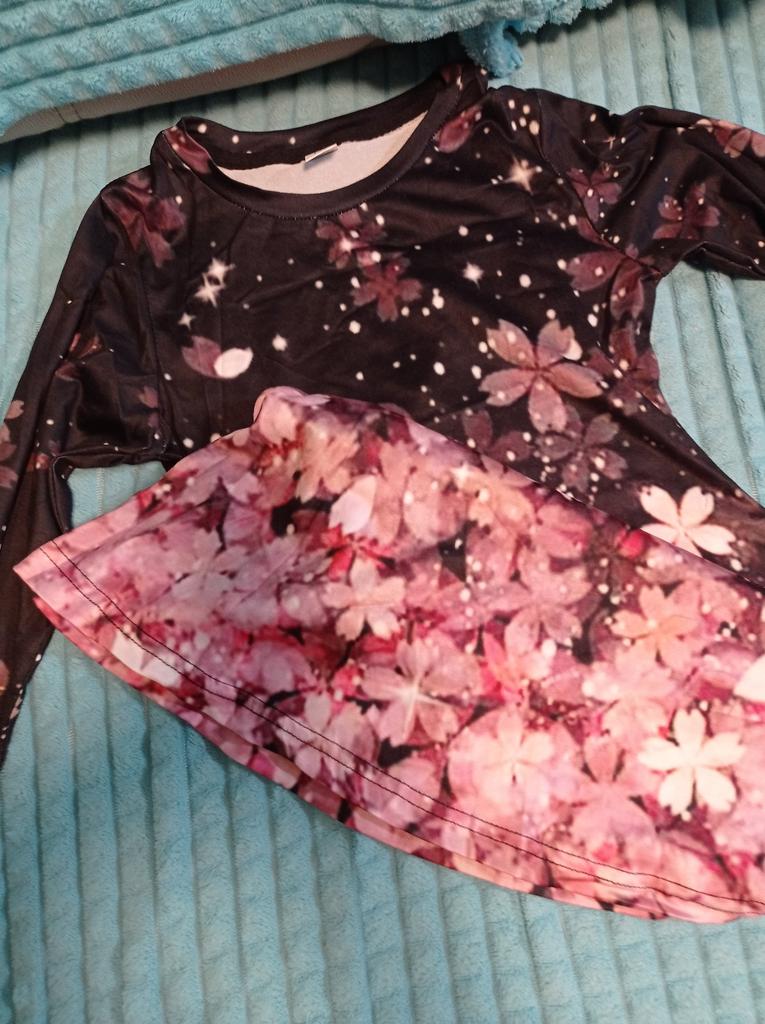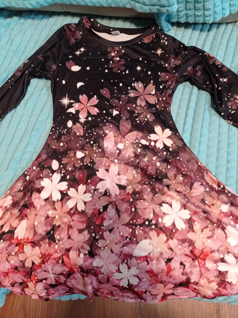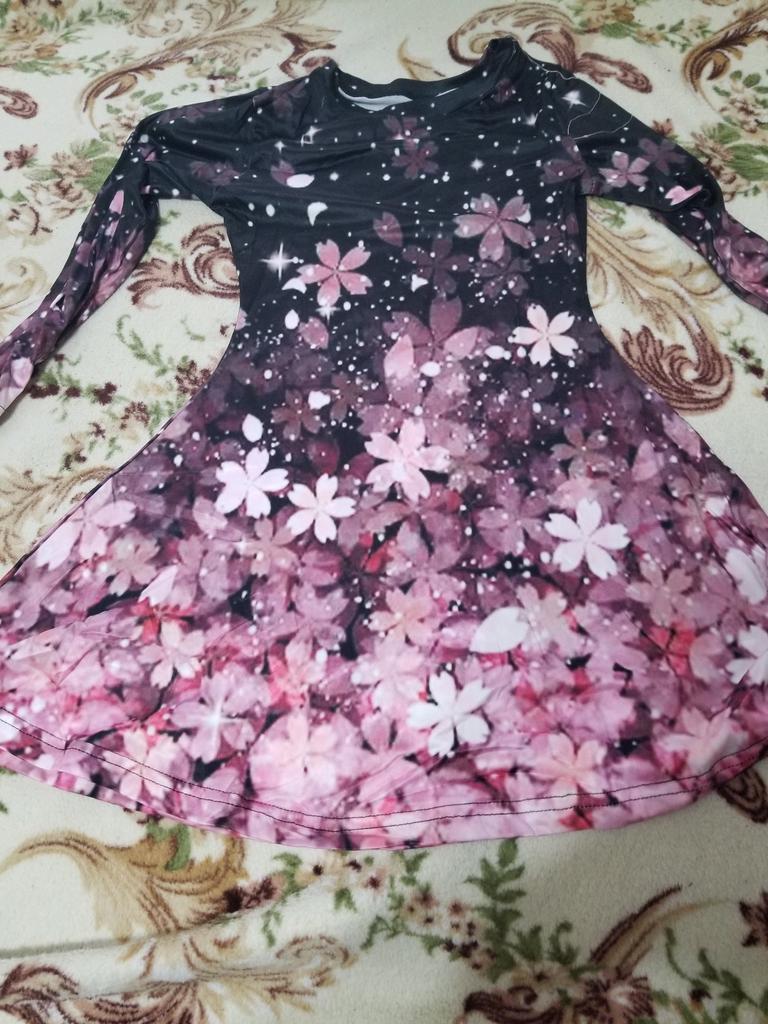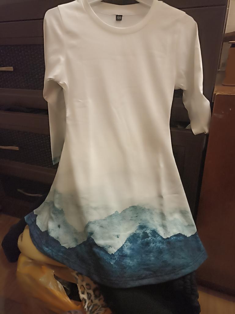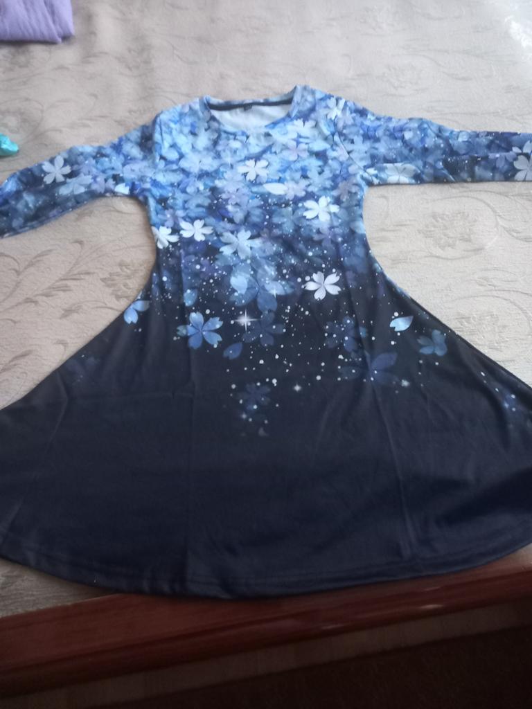 The dress is not at all like the picture, the pattern on the fabric is blurry and not clear, thin, without a frill on the hem. For summer.