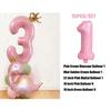 Green Pink Dinosaur Balloon Tower with 32inch Number Balloon for Girl's Dinosaur DIY Birthday Party Decorations Supply